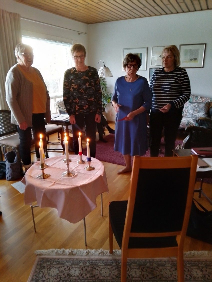 Killan Syyskokouksessa 28.10.2019 kynttiläseremonian yhteydessä hyväksyttiin uudet kiltalaiset: vas. Eija Seuna, Kirsti Hietakangas ja Raili Härkönen.