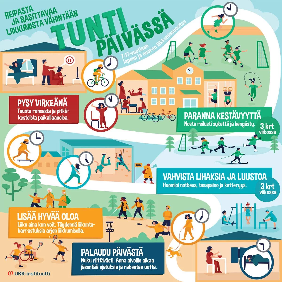 Lisää kouluikäisten liikunannsuosituksista UKK-istituutin sivuilta